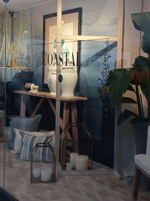 Para darle vida a la elegancia de la abuela costera, escogimos una selección de decoración y mobiliario que irradia una sensación de sofisticación atemporal. Los muebles de inspiración antigua, adornados con motivos náuticos y delicados detalles en conchas marinas, crean una atmósfera de lujo discreto. Cojines y mantas de lino en colores inspirados en el océano ofrecen comodidad y calidez, mientras que una cuidada colección de libros y una copa de vino completan el panorama de una tarde tranquila junto al mar. El resultado final es un escaparate que transporta a los transeúntes a un mundo de encanto y elegancia costeros, invitándolos a entrar y explorar el estilo Coastal Grandma que les espera dentro de la tienda La Deco.